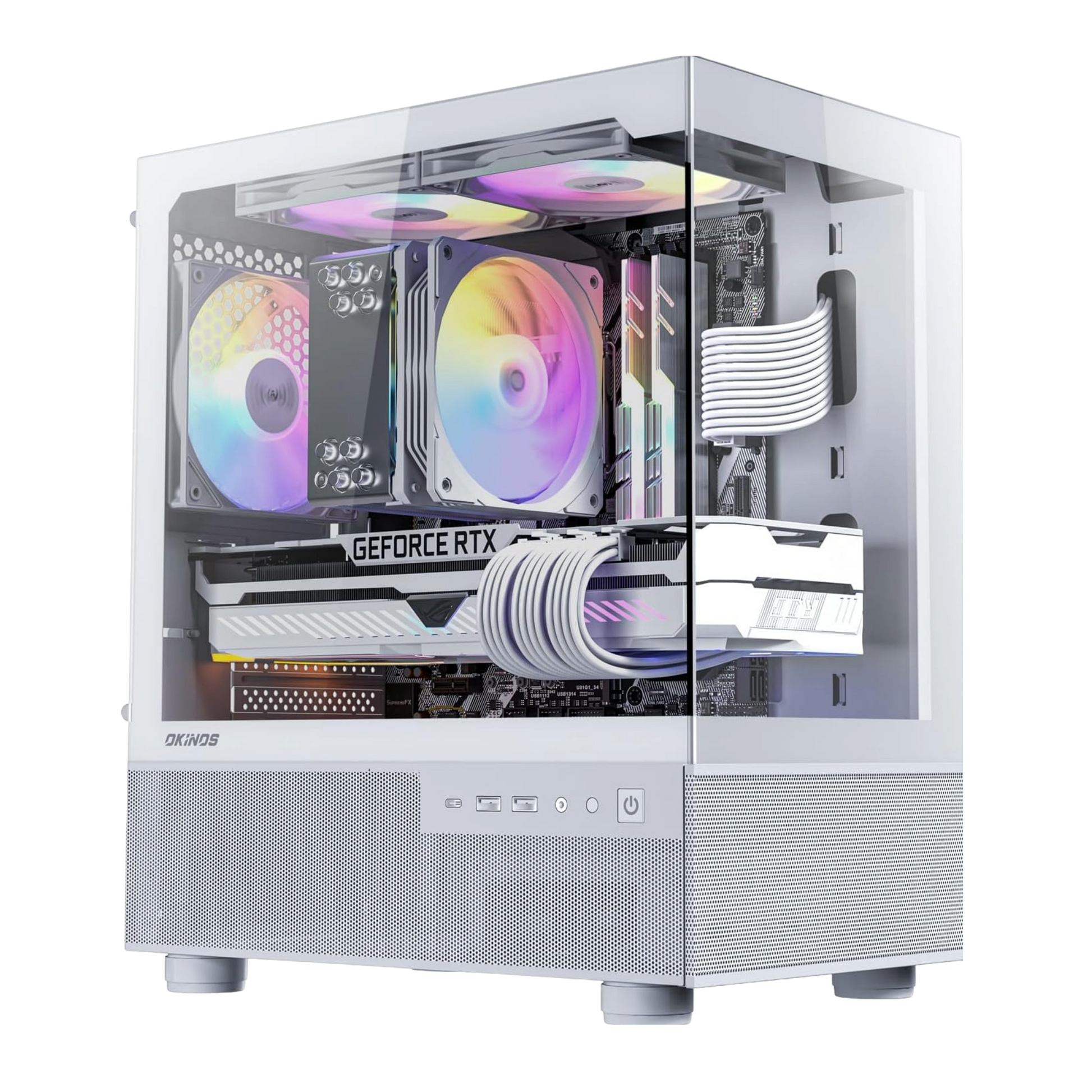 Built inside the sleek and compact Okinos Aqua 3 case, this gaming computer features a clean aesthetic, airflow-optimized chassis, and whisper-quiet thermals. With 32GB of dual-channel DDR4 memory and a fast 1TB Gen 3 NVMe SSD, you’ll experience fast boot times, low latency, and responsive multitasking.